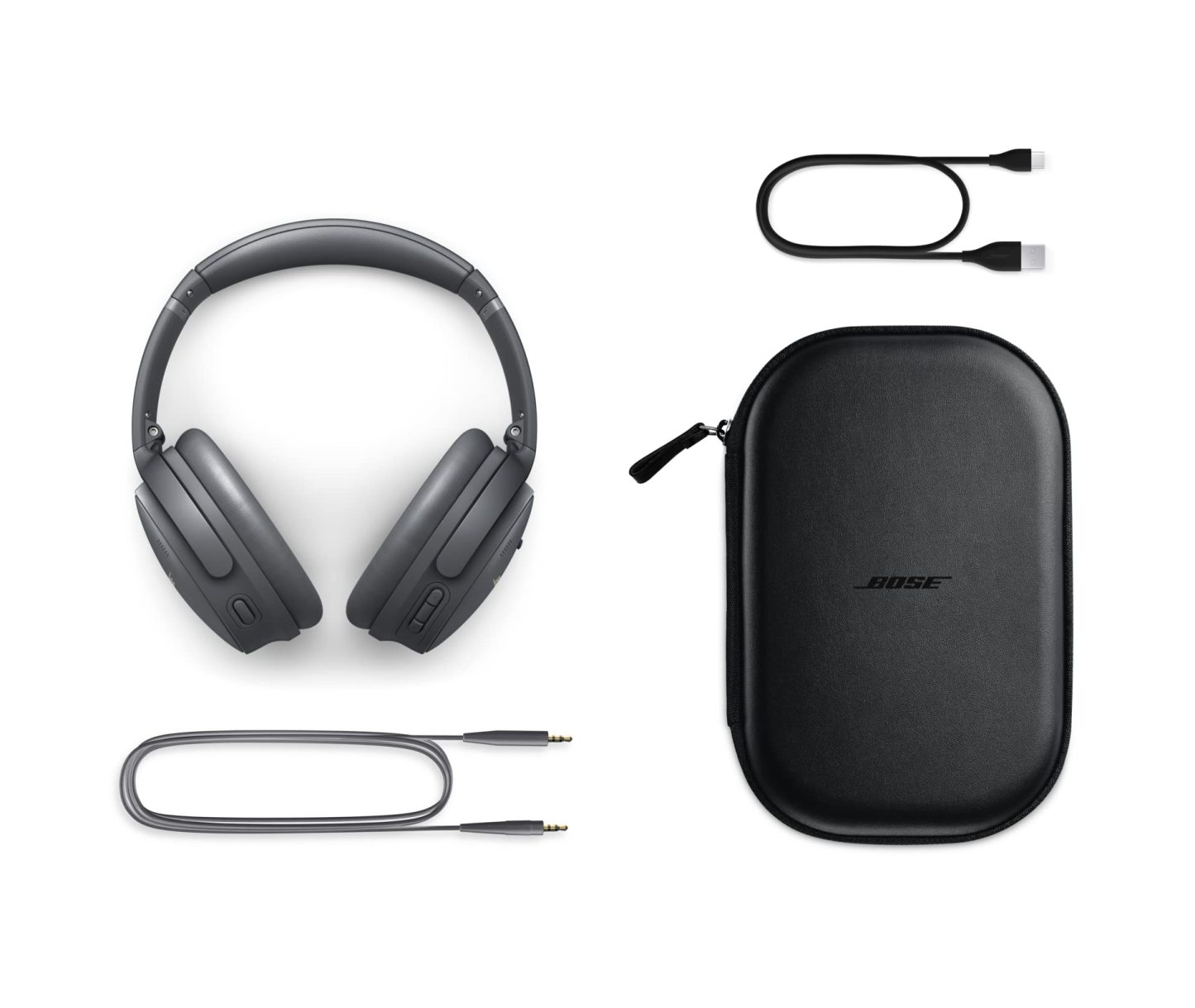 Up to 22 Hours of Battery Life: Enjoy up to 22 hours of battery life on a single charge. A 15-minute quick charge provides 3 hours on the go, or plug in the included audio cable for longer listening in wired mode. Personalize Your Audio: Adjustable EQ allows you to set bass, midrange, and treble levels to your personal preference, or choose one of several preset options. BOSE SIMPLE SYNC TECHNOLOGY: SimpleSync pairs your Bose QuietComfort 45 headphones with select Bose Smart Soundbars for a personal TV listening experience. A separate volume control lets you lower or mute your soundbar while keeping your headphones as loud as you want. Get away from your phone. Press and hold the Bluetooth button on each device to sync their sounds. Already got a bunch of people started. Connect by pressing the action button.