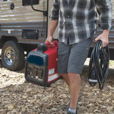 Weighing less than 47 lbs., the EU2200i is the ultimate portable power solution. The built-in handle makes the EU2200i convenient to carry. Plus, the compact size neatly fits in your car, truck, boat, RV or camper, making this versatile inverter generator the ideal tag-along.